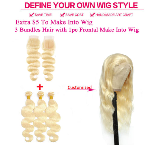 613 Body Wave 3 Bundles with 4X4 Lace Closure Can Make Into Wig for you