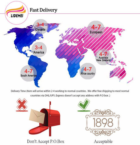 4) Delivery Time: 3-5 working days to US and Canada , 4-6 working days to European countries
