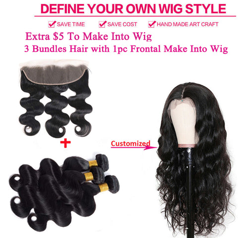 Body Wave 3 Bundles with 13X4 Lace Frontal 100% Human Hair Can Make Into Wig for you