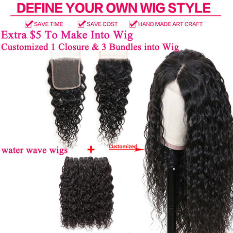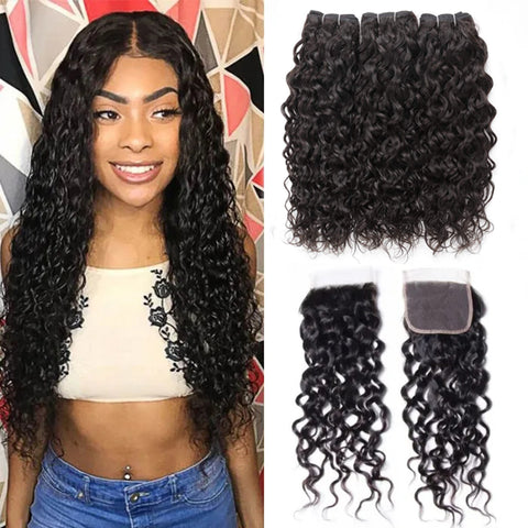 Water Wave 3 Bundles with 4X4 Lace Closure 10A Virgin Human hair Can Make Into Wig for you