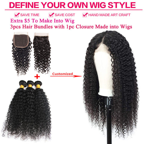 Jerry Curly 3 Bundles with 4X4 Lace Closure 10A Virgin Human hair Can Make Into Wig for you