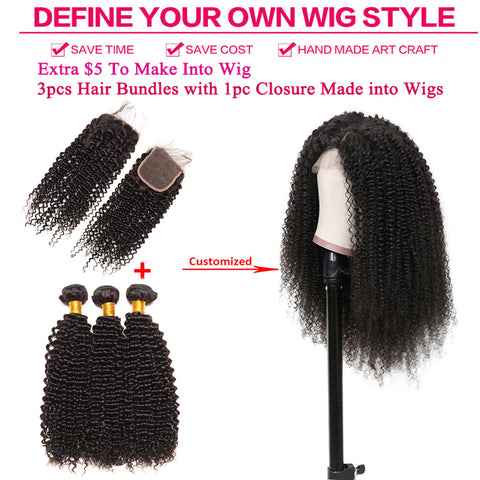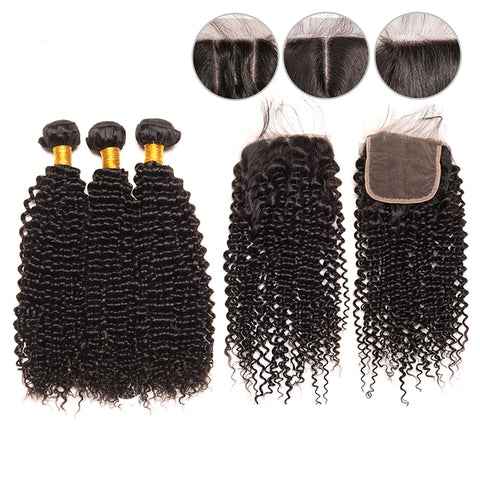 Kinky Curly 3 Bundles with 4X4 Lace Closure 10A Virgin Human hair Can Make Into Wig for you