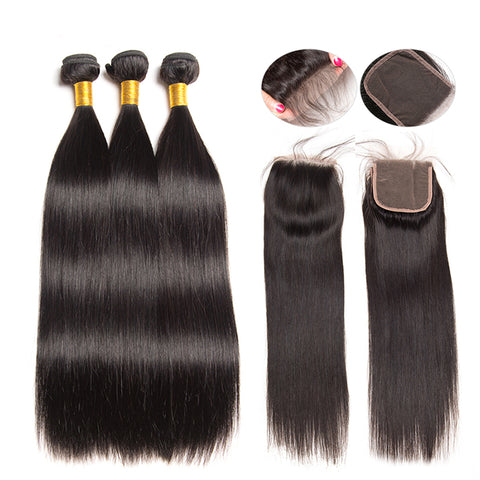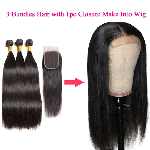 Straight 3 Bundles with 4X4 Lace Closure 10A Virgin Human hair Can Make Into Wig for you