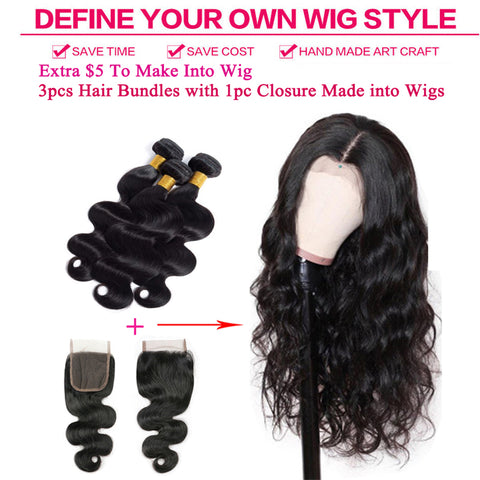 Body Wave 3 Bundles with 4X4 Lace Closure 10A Virgin Human hair Can Make Into Wig for you